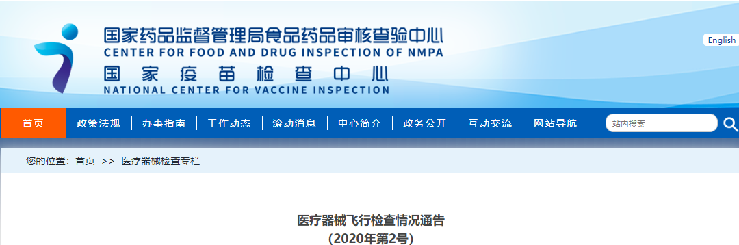 同样在本月13日,国家药监局核查中心发布《医疗器械飞行检查情况通告(2020年第2号)》。